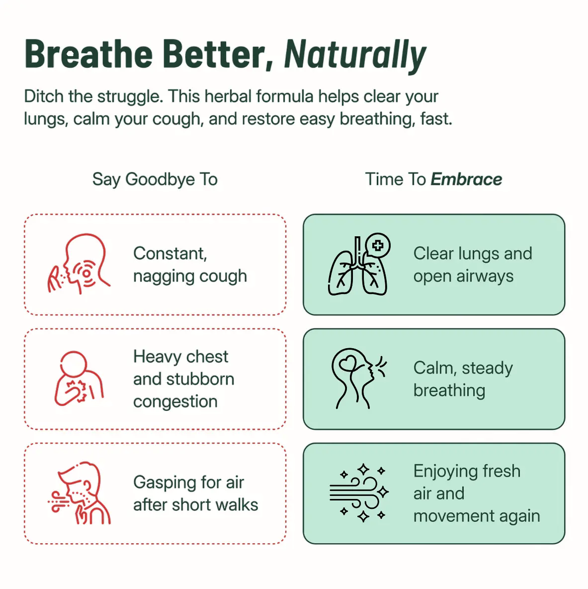 - Day 1 : You may notice subtle changes — a slightly lighter chest or a more productive cough — as your body begins responding to the natural botanicals.